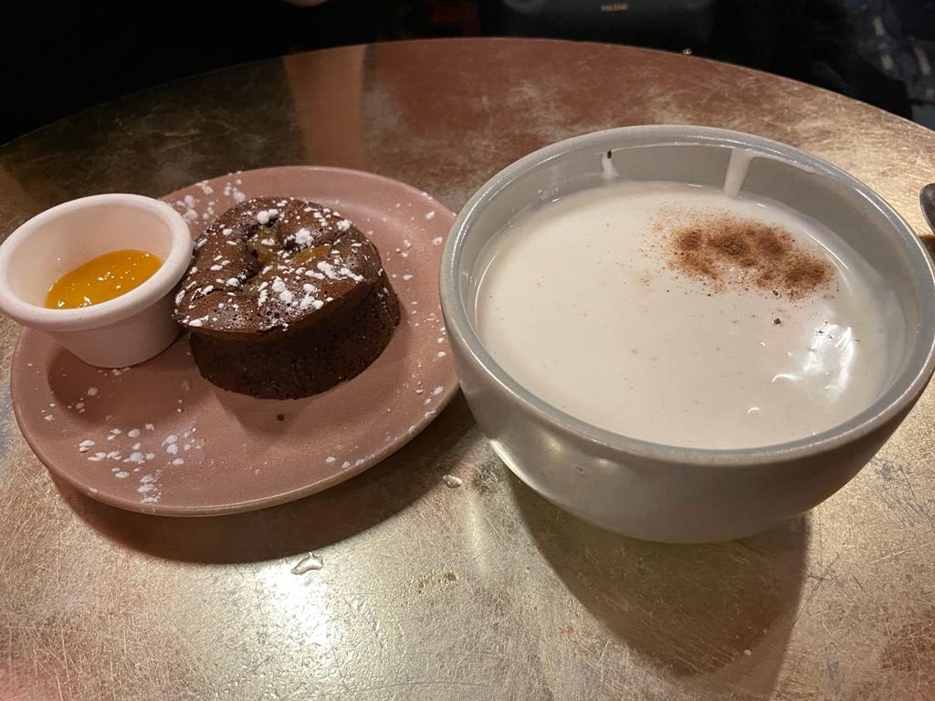 Côté dessert, on a pris le fondant au chocolat au gingembre et un dessert traditionnel, le Thiakry (semoule de mil, coco, fruits secs, fromage blanc)