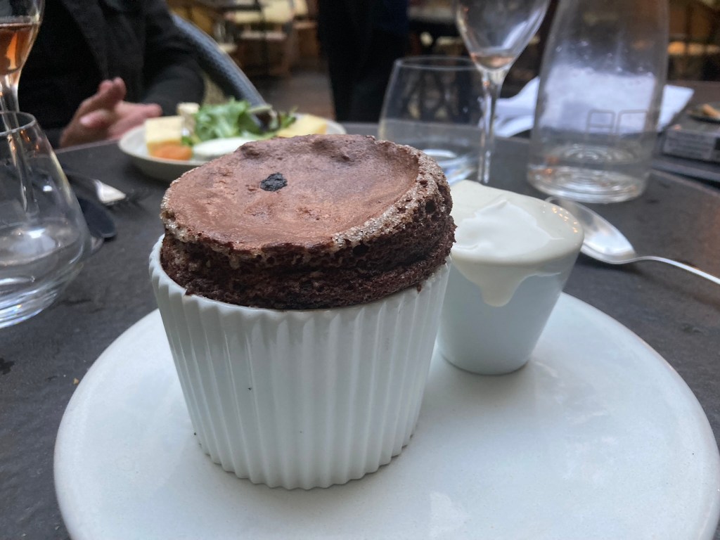 En dessert, on ne se prive pas du soufflé au chocolat et sa glace vanille (habituellement crème au sésame – 14 € ). Mmmmmm….