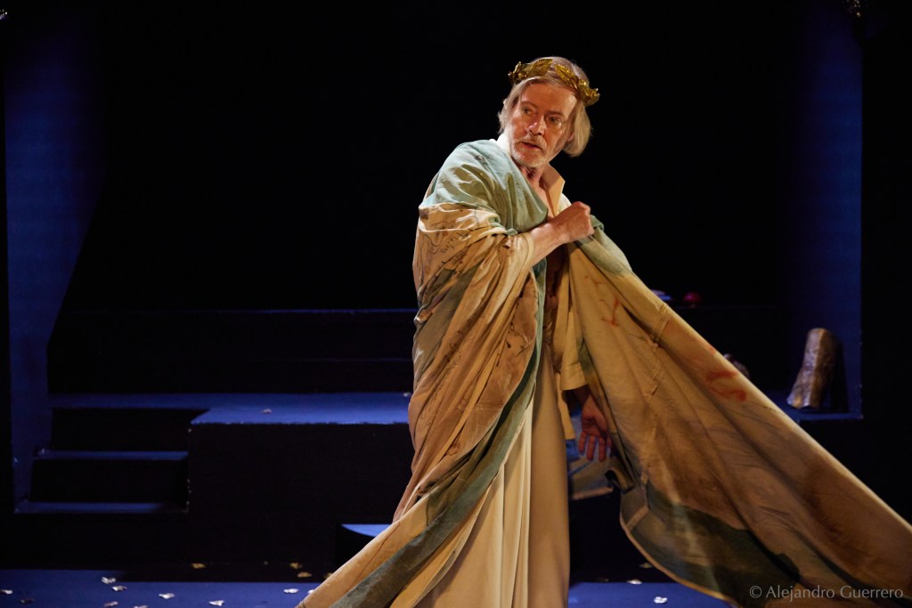 La très belle scénographie, signée Marguerite Danguy des Déserts, se marie à merveille avec la lumière de Jean-Pascal Pracht et la création sonore de Bernard Vallery. Marguerite Danguy des Déserts interprète par ailleurs Ariel dans La Tempête,également à l’affiche du Poche Montparnasse. Sa toile peinte d’une carte géographique aux tons harmonieux, est tantôt cape, traine, chemin ou évocation d’Antinoüs. La base de colonne antique est le support d’une bassine de cuivre. Son chatoiement joue avec les expressions de l’empereur, sa couronne de laurier et l’élément qui clos le spectacle dans un hommage ultime à la civilisation romaine et que nous vous laissons découvrir.