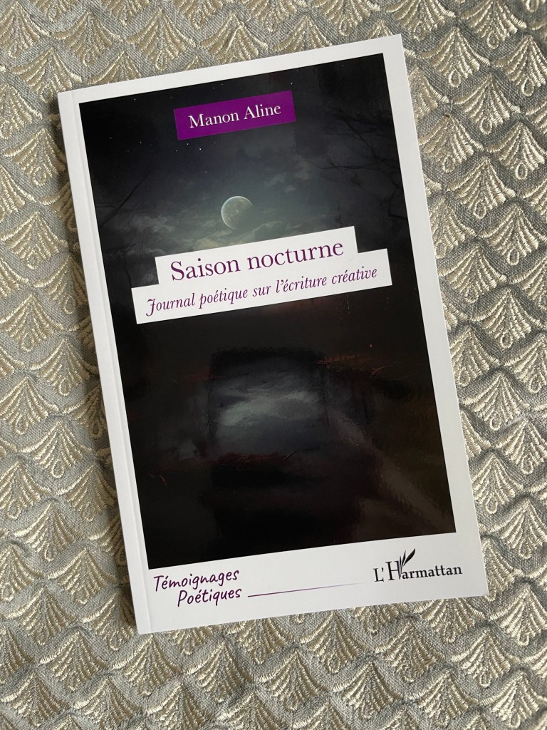 Saison nocture– journal poétique sur l’écriture créative- de Manon Aline, Éditions L’Harmattan.