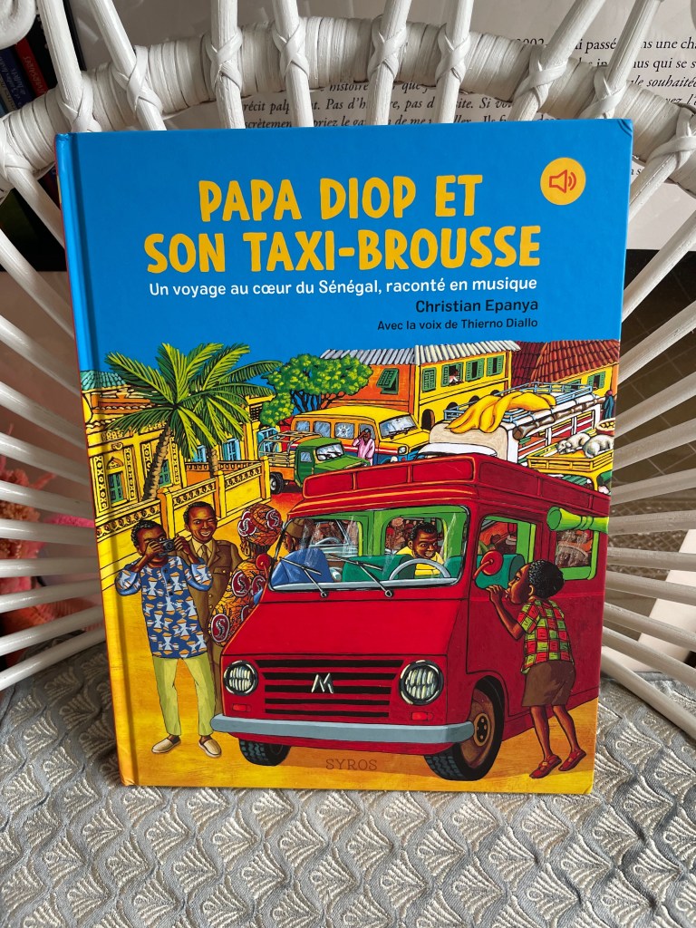Papa Diop et son taxi brousse -un voyage au Sénégal raconté en musique– de Christian Epanya avec la voix de Thierno Diallo, Éditions Syros (dès 3 ans).