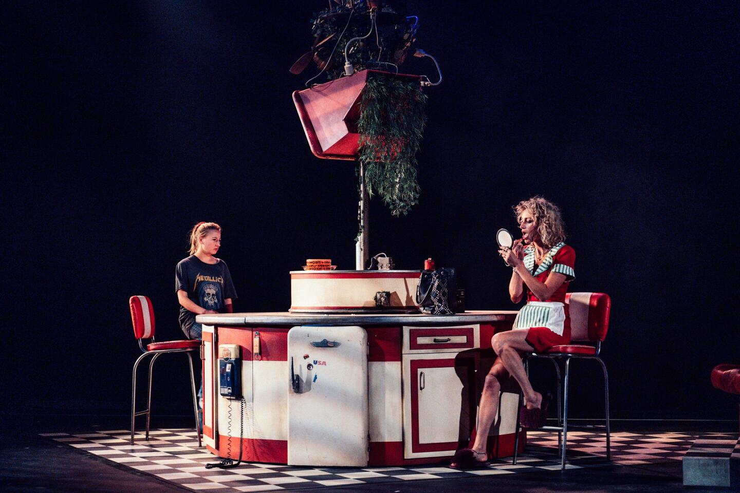 En revenant au Texas, dans un décor de dinner en décrépitude, la pièce de Letts version française risque de ravir les fans du film, en quête des personnages névrosés, populeux et mythiques du film. Car tout est là : Sharla ouvre toujours le bal avec une fausse touffe pubienne (la pièce est déconseillée aux moins de 16 ans), le langage est toujours aussi cru, le tueur à gages Joe toujours aussi méticuleux et charismatique et la scène du pilon de poulet, est également de la partie, à vous faire voir KFC d’une autre manière.