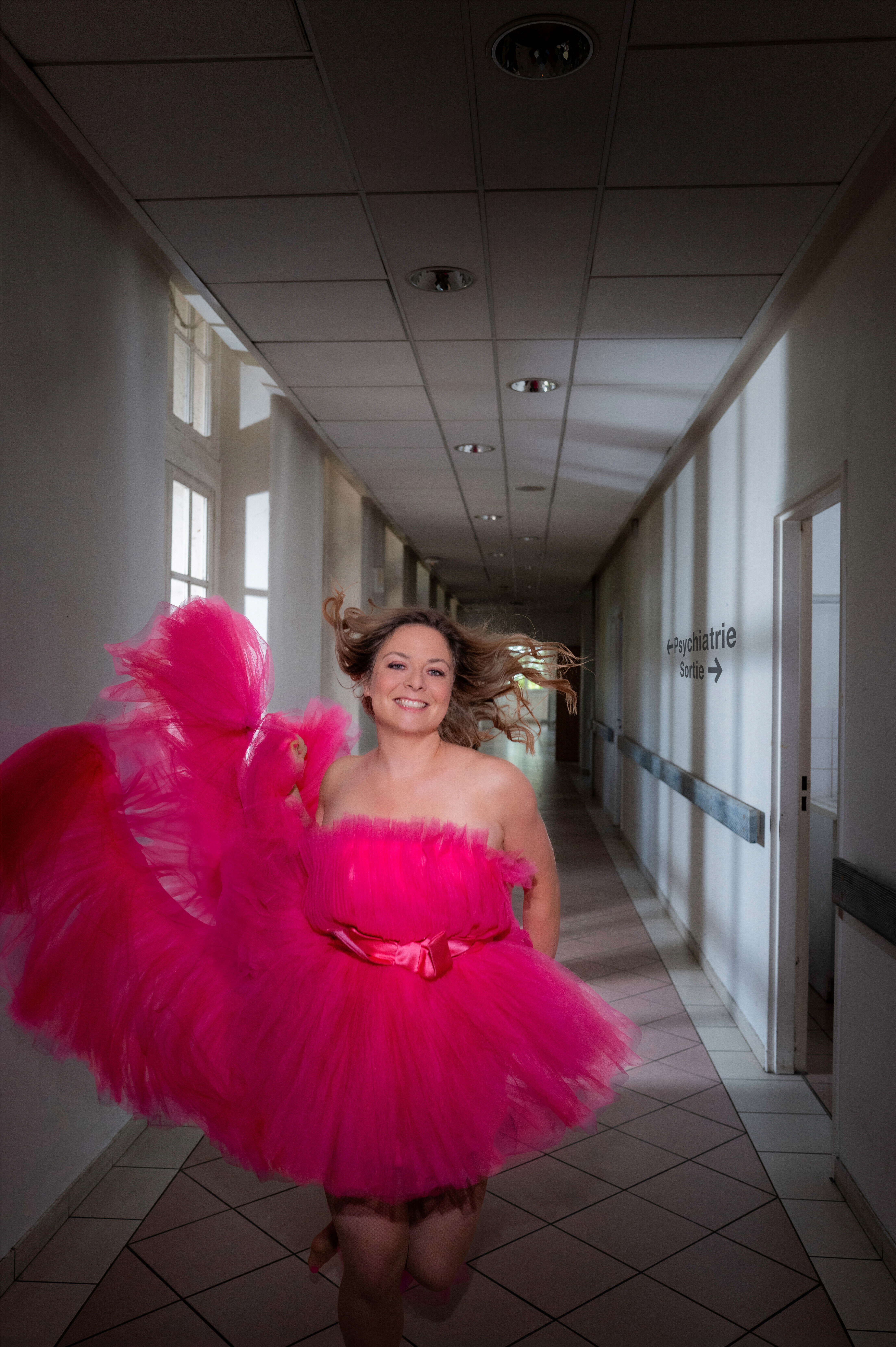 Si les failles de Constance sont le centre du spectacle, celles des autres personnages sont aussi explorées. Constance vous emmène dans la forêt ou à travers des couloirs dépouillés d’hôpital, avec de nombreuses escales décalées. Comme celle du cours d’aquagym de Michel, le moniteur aux blagues un peu lourdes. La comédienne interprète non seulement la personne qui anime les ateliers, mais aussi chaque participant avec ses tocs ou sa petite folie qui le pousse à bout. Ainsi cette art-thérapeute qui devient colérique et chasse ses pensionnaires avant d’animer un atelier sur… la colère. Ou encore cette instructrice de yoga russe paranoïaque.