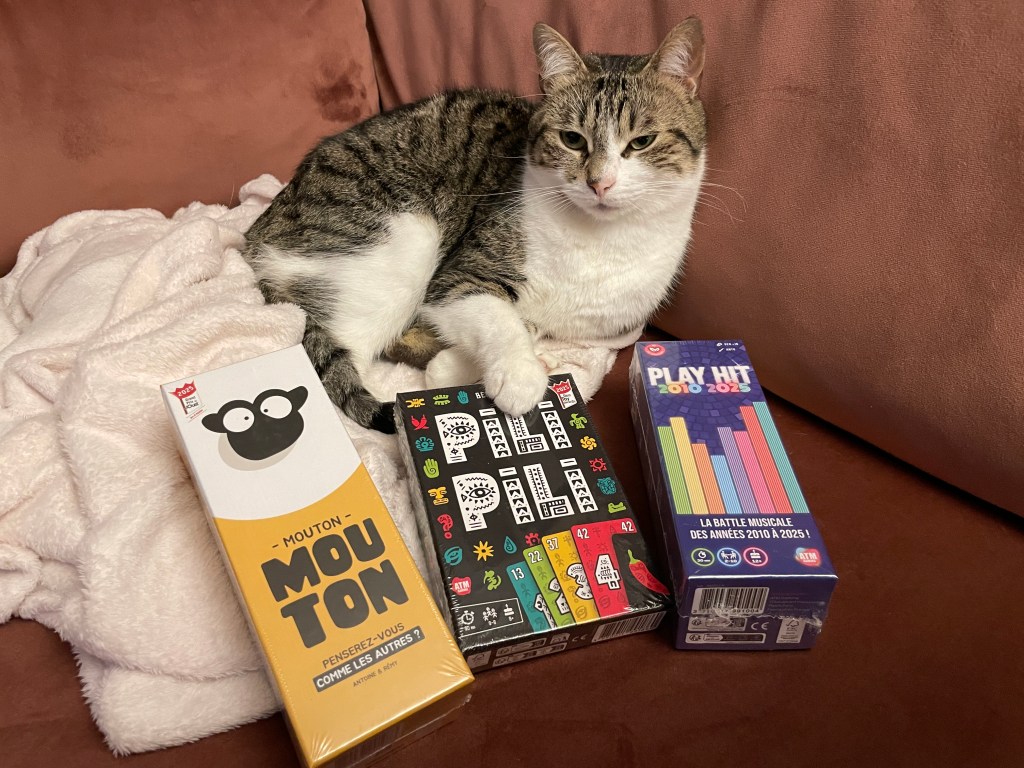 Un jeu adorable où l’on tente de former des troupeaux sans se faire surprendre par les événements farfelus qui viennent tout bouleverser. On rit, on peste, on recommence et on s’attache vite à son petit cheptel. Le hasard et la stratégie s’équilibrent juste comme il faut. Un jeu familial vraiment charmant et accessible à tous. (environ 12 €)